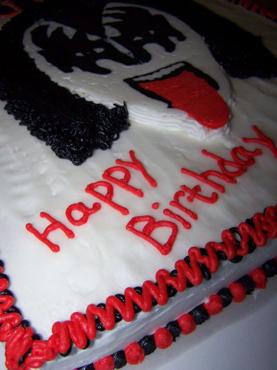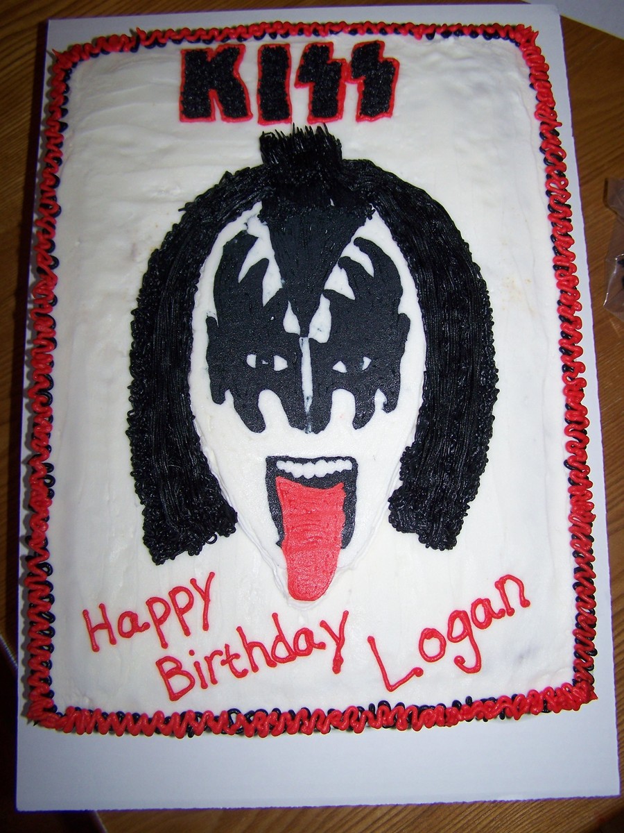 cake i made for a friends son who loves, loves, loves kiss/gene simmons... marble sheet cake with buttercream icing... used frozen buttercream transfer on face