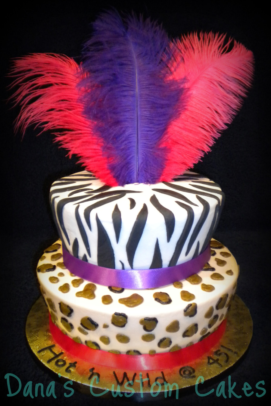 Thanks to all CCers out there that did animal print cakes, it helped me out quite a bit! 8" and 10" rounds, carved sides, buttercream covered, fondant zebra stripes. I usually don't like putting things on my cakes that's not edible, but this was a rush order, and I like it!! ; )
