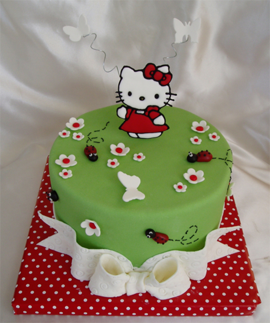 Another Hello Kitty cake, I get lots of requests for this design. This time in green with red and white details. Kitty is RIT (Royal Icing Transfer) and all the rest is MMF.