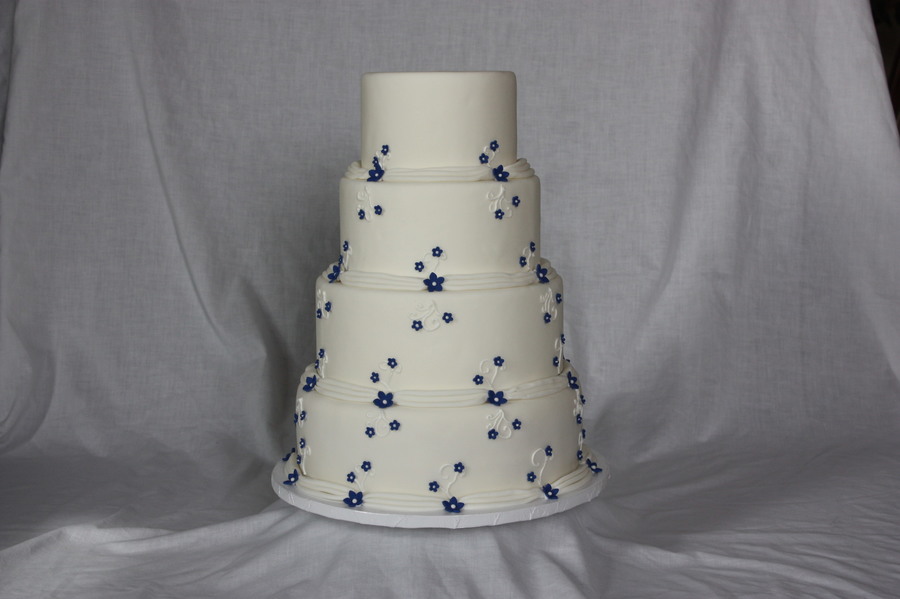 6" 8" 10" 12" Rounds iced in fondant with fondant flowers and royal icing scrolls