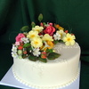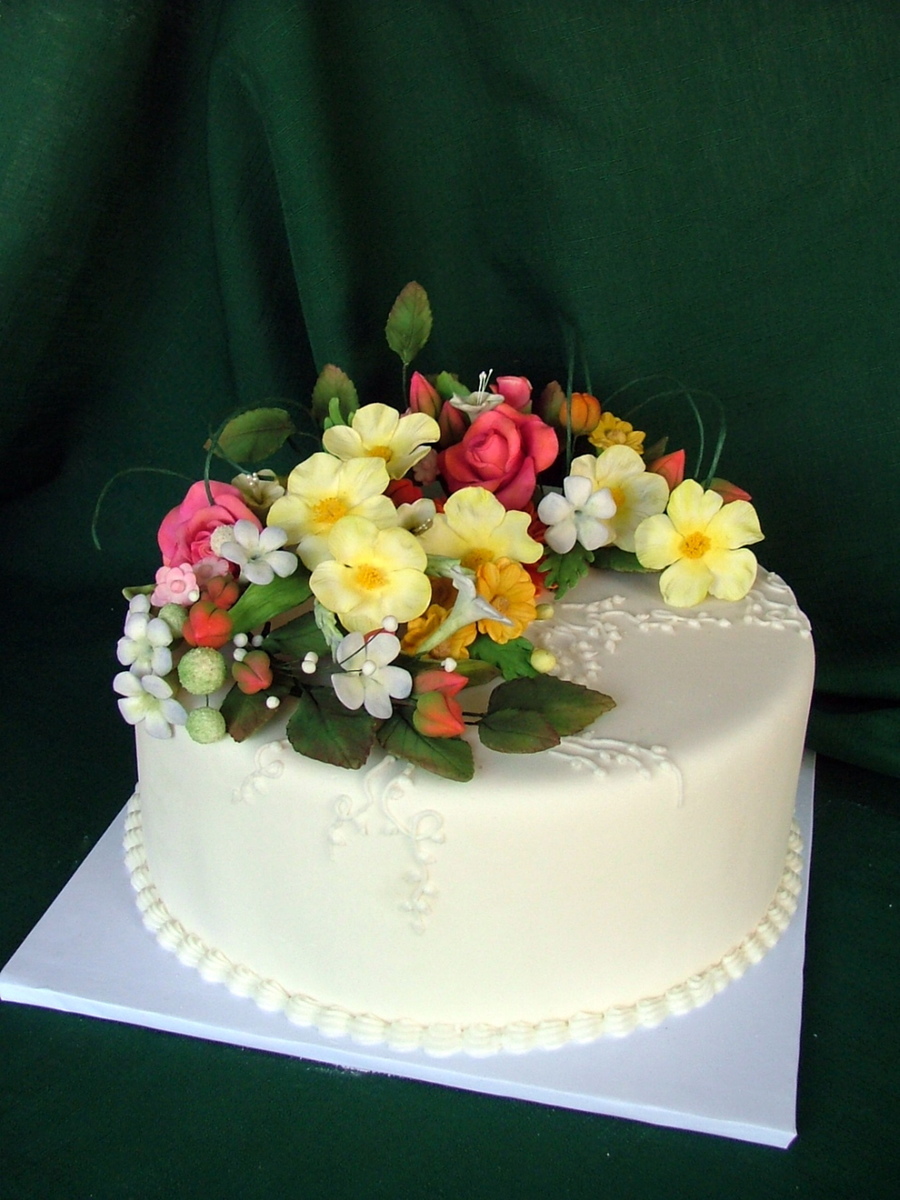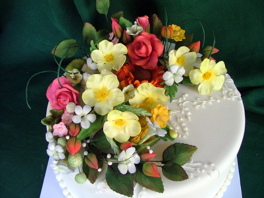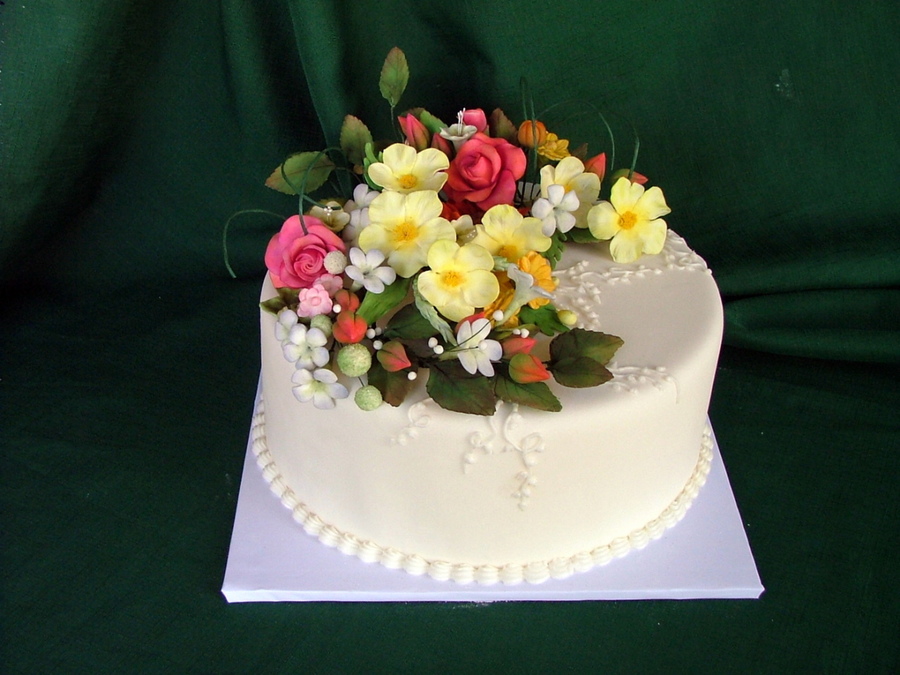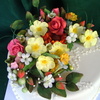 All the flowers and leaves are made of sugarpaste. I used dusting colours. I've made some ornaments with royal icing, TFL