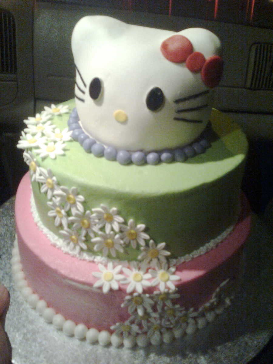 Head carved in white cake, ears are RKT. Middle tier is red velvet, and bottom is dark chocolate fudge.