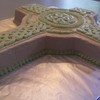 I pieced cake together for the cross butter cream and butter cream for the celtic knots