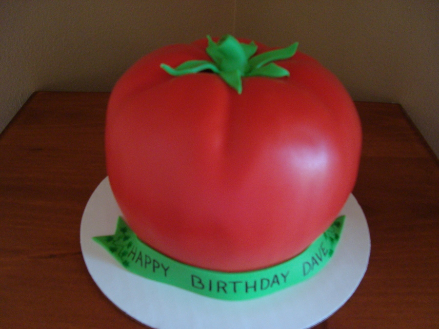 a lady ordered this for her brother's surprise birthday gift. he is a gardener. just a small tomato made from the 6" ball pan. all covered in fondant.