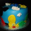 Our nephew loves the Hot Dog song from Mickey Mouse so my sister-in-law threw him a Mickey themed birthday. I watched the youtube video to educate myself on the Hot Dog song and saw Mickey's clubhouse. This was no where near my original design, but after all the problems I had with this cake, I'm happy with how it turned out. Fondant covered and all decorations are fondant.