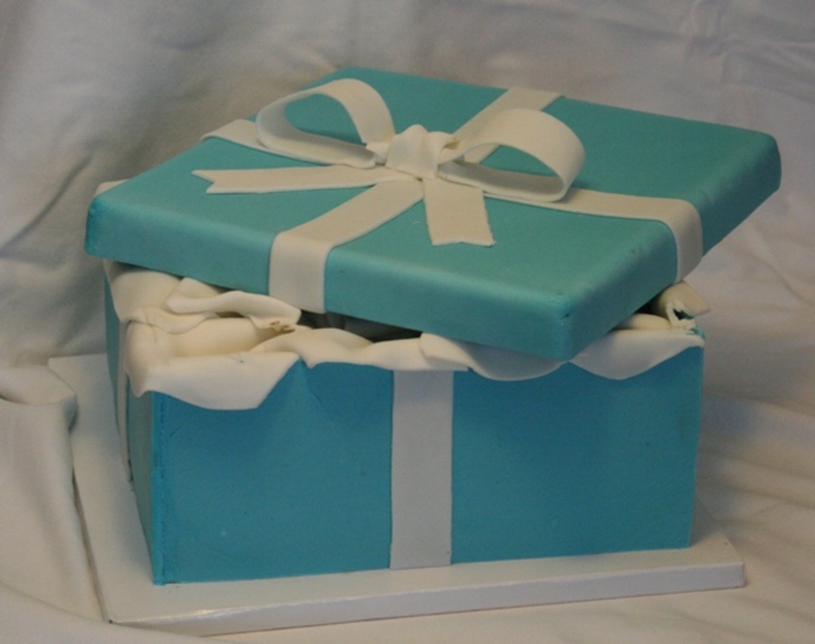 My first gift box cake! Thanks to bobwonderbuns for inspiration and instruction on how to achieve the proper shade of Tiffany blue, and Sugarshack's boxes and bows dvd! I learned a lot from this cake and will DEFINITELY give myself more time with the next one.