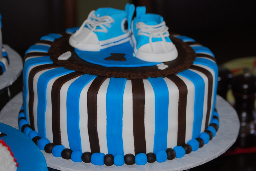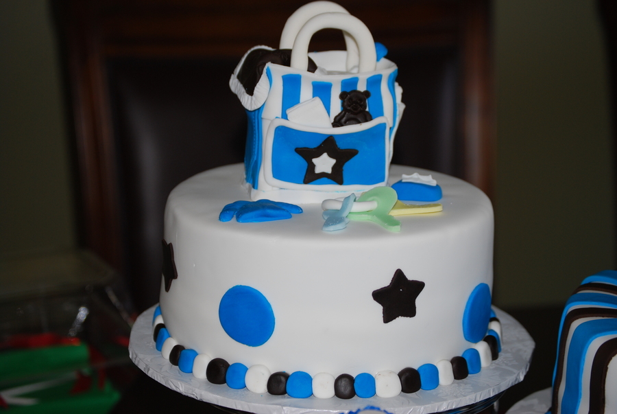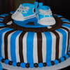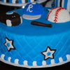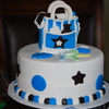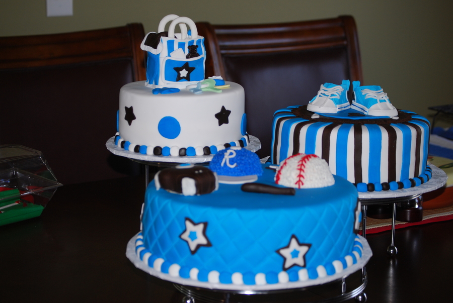 Thanks to CakeDesigns and Cupcake Envy for the ideas. White cake w/pineapple filling, Chocolate cake w/whipped chocolate ganache filling, and yellow cake w/strawberry filling. Fondant covered and fondant and gumpaste accents.