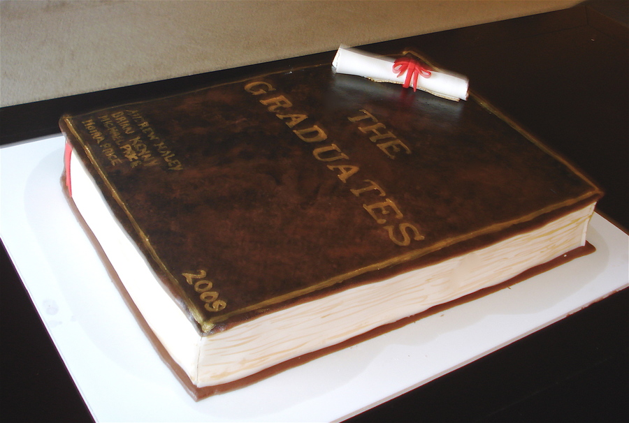 This cake was for a group graduation party, 2 high school grads and 2 college grads... all different schools. I put each of their names on the book as if they were an author.
