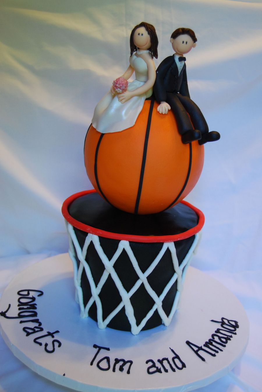 cake made as a present for friends. ball is RCT covered in fondant. figures are gumpaste.