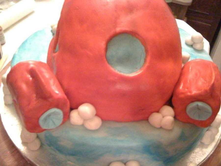 BOTTOM...ALMOND VANILLA CAKE...LITTLE EINSTEIN ROCKET SHIP...LIGHT CHOCOLATE CAKE...COVERED IN BC/FONDANT...