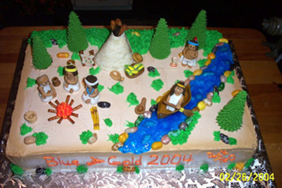 My son's cub scout pack Blue and Gold Banquet cake. The theme was American Indians (obviously).