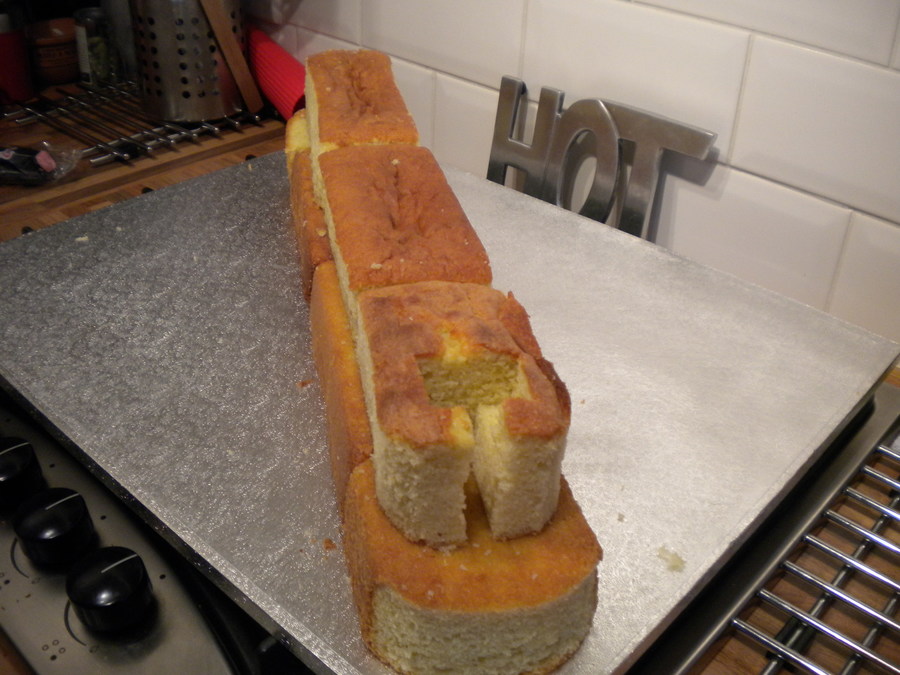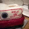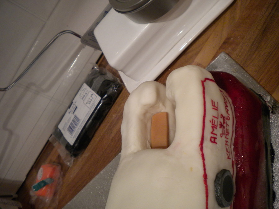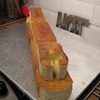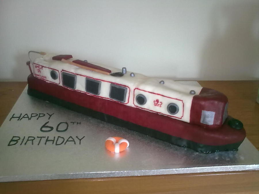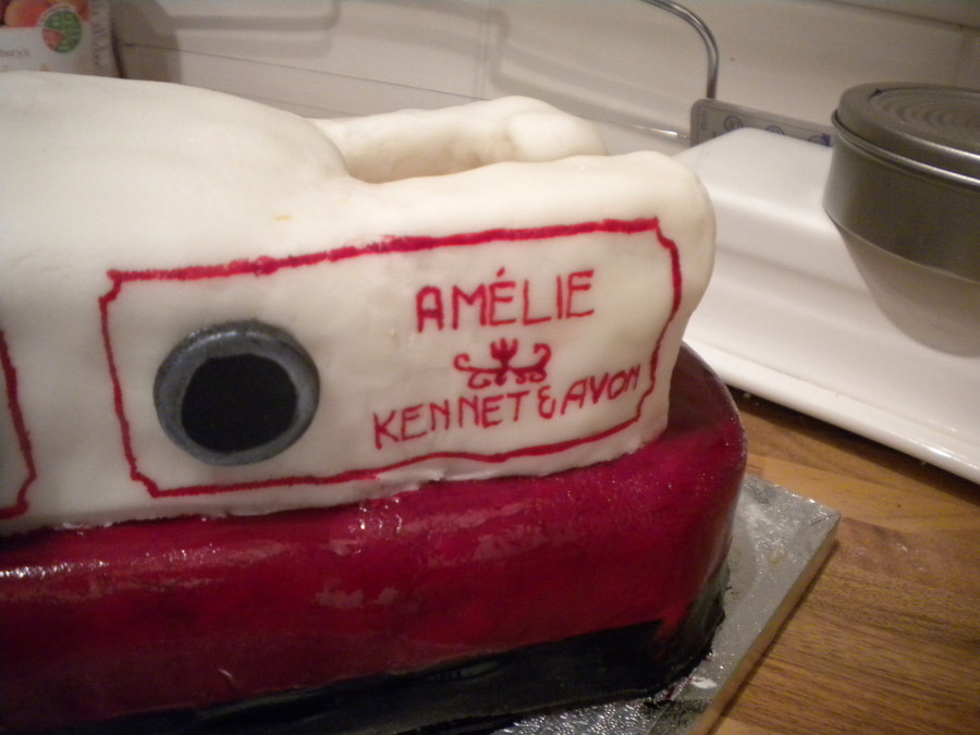 Narrow boat cake made out of 7 loaf tin sized cakes (it had to feed a lot of people!). This was a joing effort between myself and a friend for her boyfriend's dad. The cake is glued together with jam and the decorations all made out of icing and painted with paste food colouring or edible silk.