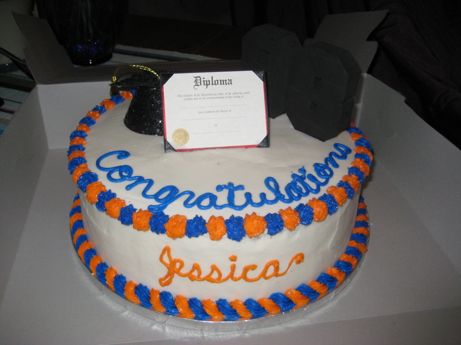 Buttercream cake with orange and blue.