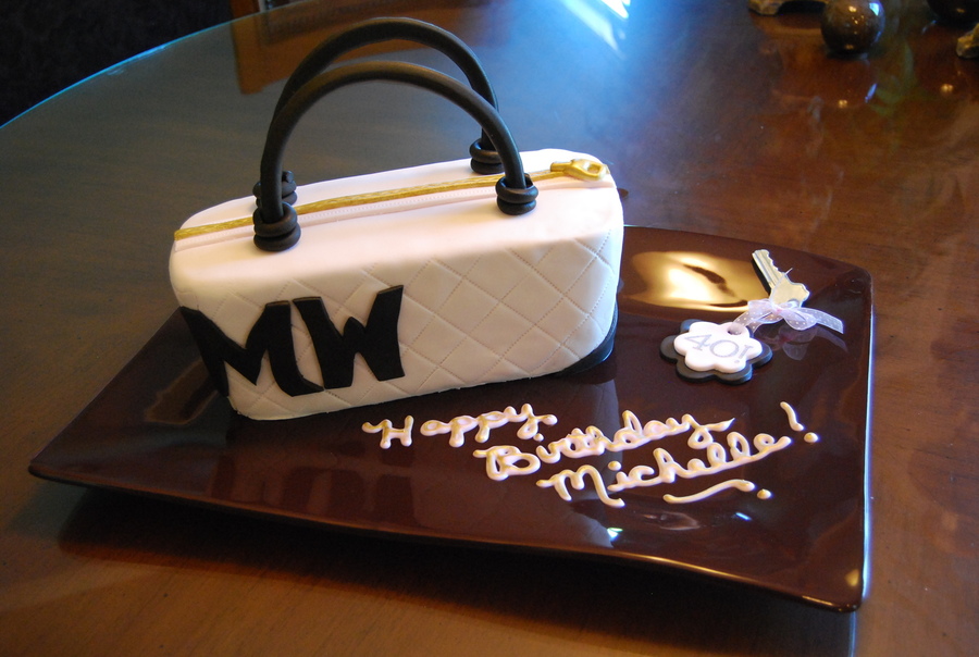 Obviously inspired by Planet Cake, made for my girlfriend, initials on bag and gumpaste keychain with "40" on it.