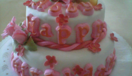 Accordion shaped cake covered with fondant and gumpaste accents