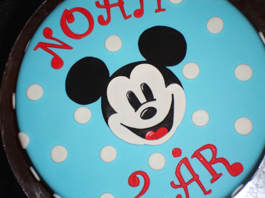 I cut out Mickey Mouse in gumpaste with a knife. The rest is fondant.