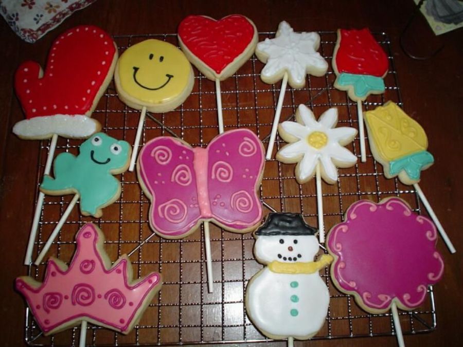 Here's a selection of cookies I made today to put in cookie bouquets. My SIL is having an open house Saturday so I'm attempting to sell some bouquets(hope they are good enough to sell). Will post pictures of the bouquets when they are done.