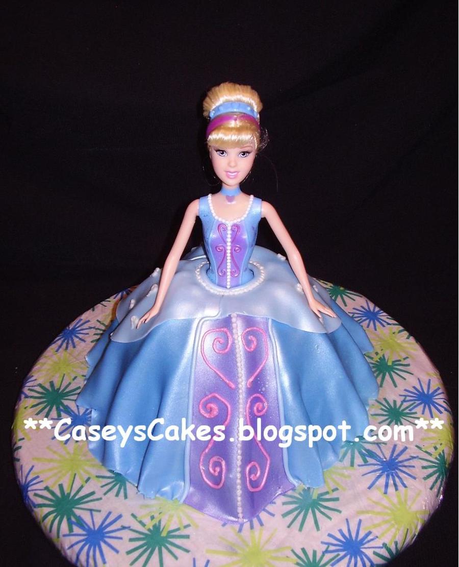 This was for my Niece who recently turned 4 years old. She is very girlie, her favorite color is pink & LOVES princesses. The Cinderella doll was a bath toy, so the body was dressed in a hard plastic "bodice" & I decorated the "skirt" cake to match. The cake was strawberry so she got her pink too