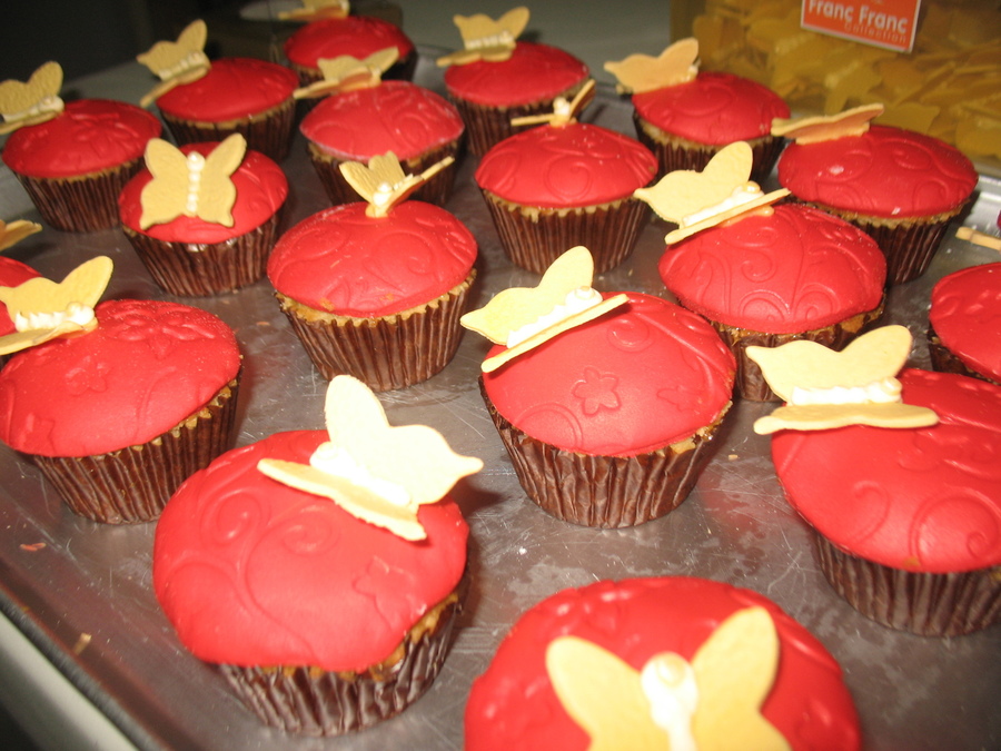 Red Marshmallow Fondant Cupcakes on Cake Central