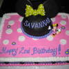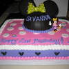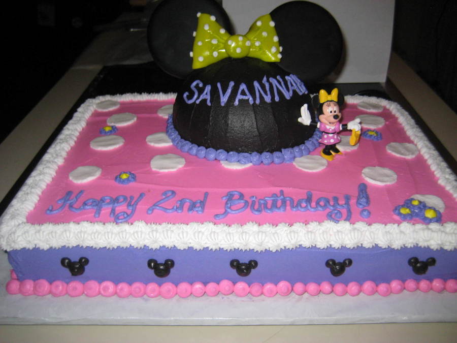 All edible except Minnie figurine. Buttercream and chocolate fudge icing. Fondant bow.