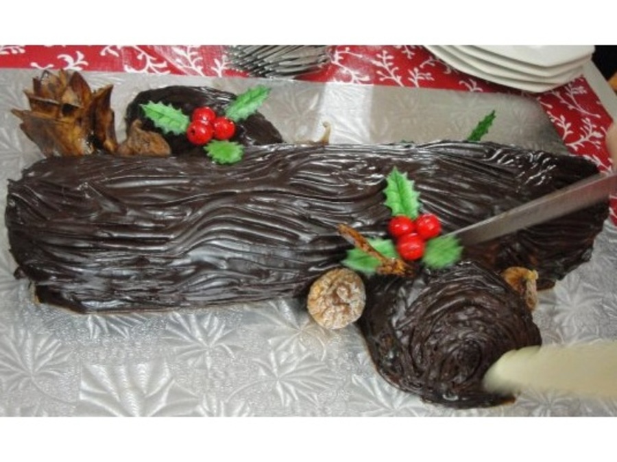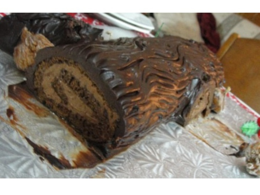 My Mum was in Disney before Christmas last year and had some DisneyWorld yule log cake while there. She came home and wanted to make it for Christmas Eve dinner so we made one together! It was weight watchers recipes for the cake/filling and ganache for the "bark". We baked it together, I made the holly etc and my Mum frosted the log with the ganache. :) TFL!