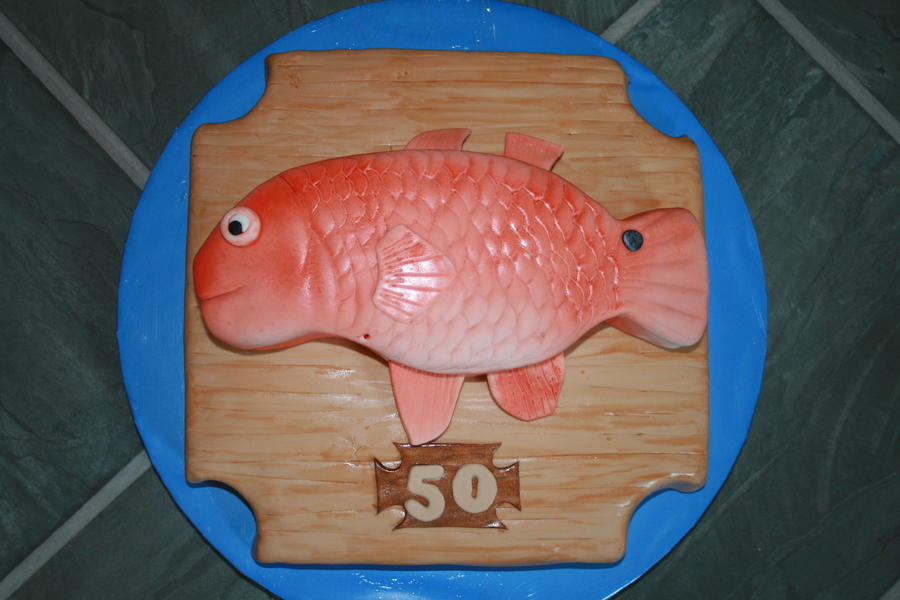 This cake was my 1st time I use my airbrush and 1st time I try a fish. It is chocolate cake with chocolate butter cream covered in mmf.