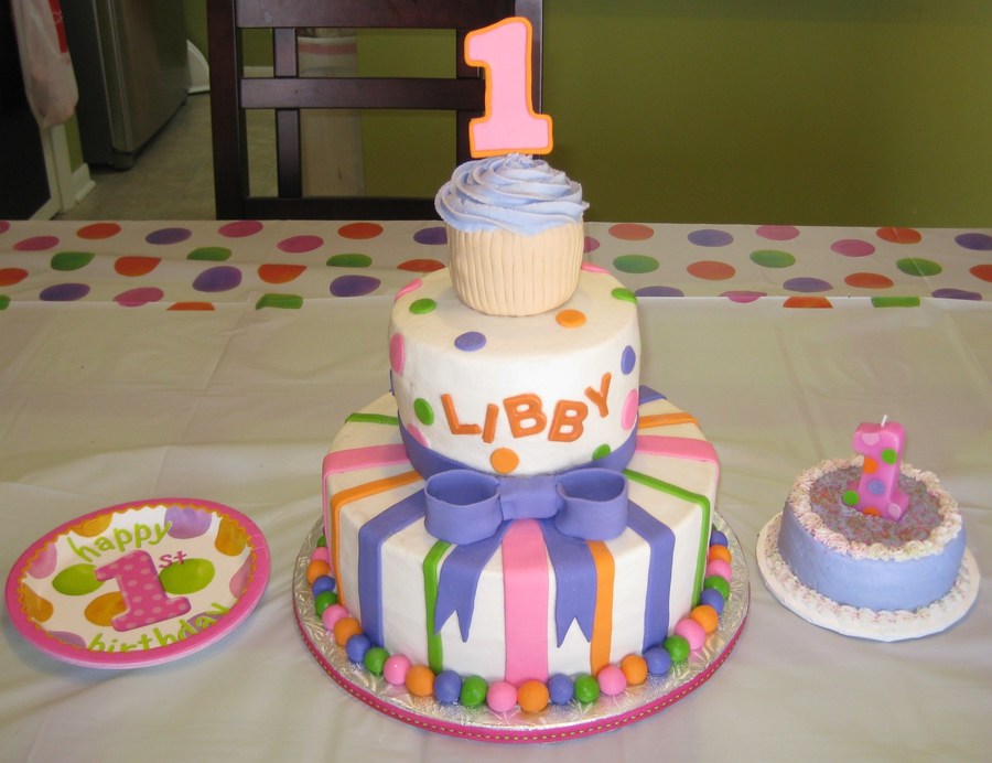 Buttercream with with fondant decorations. Cupcake on top is made out of RC and buttercream icing for the swirl.
