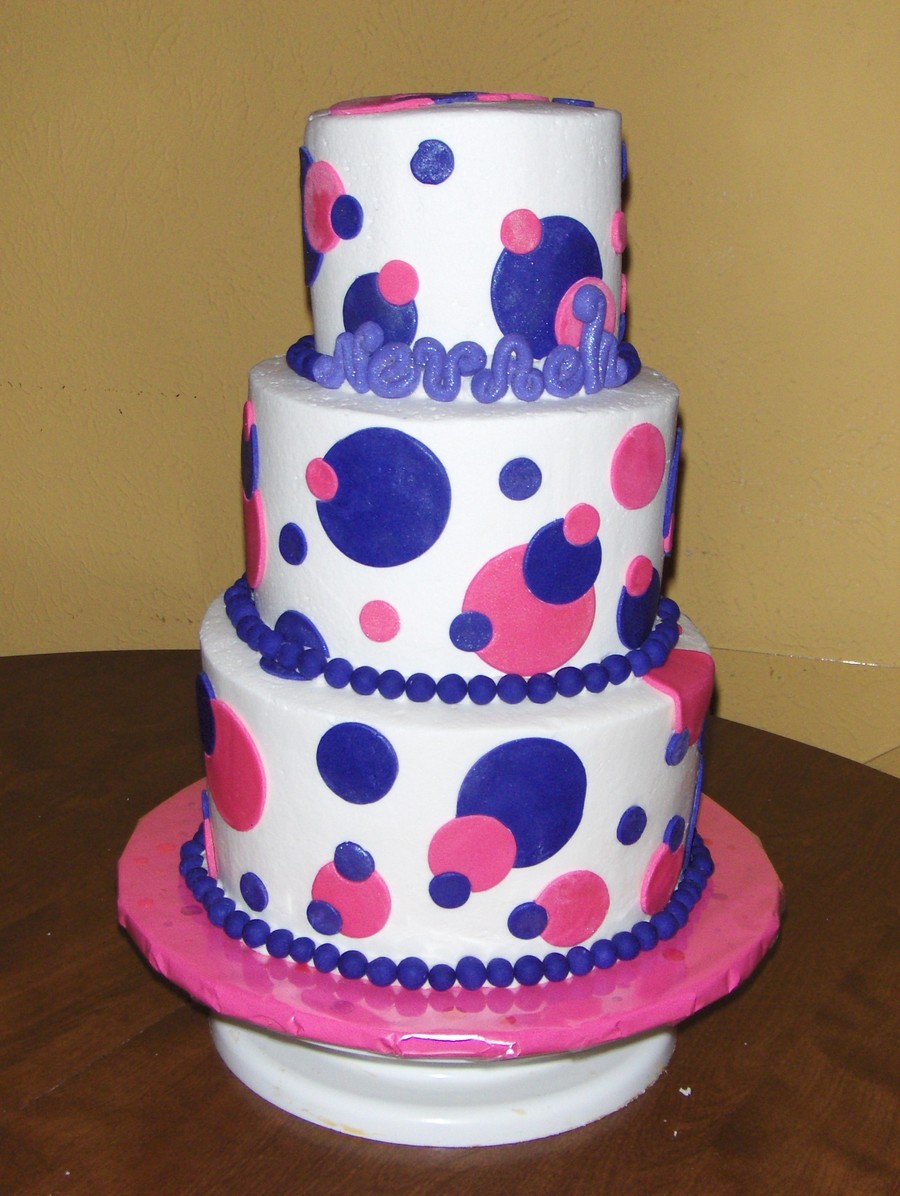 wasc cake with vanilla buttercream; mmf decoration; the filling was hot pink and purple swirled