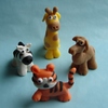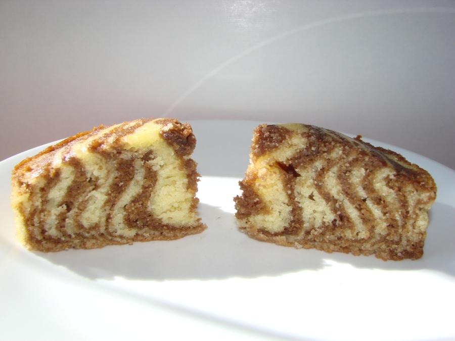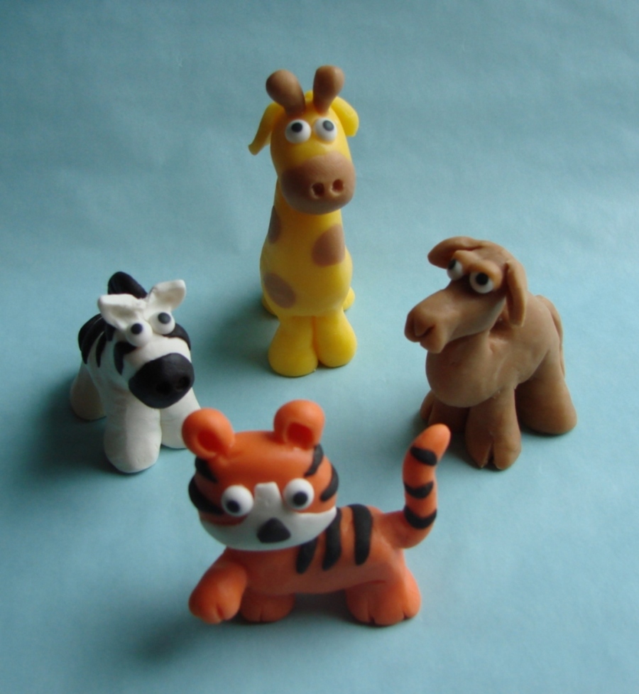 These are made of modeling chocolate and candy clay. The tiger tastes like orange sherbet, the camel tastes like butterscotch, the giraffe is mostly vanilla, and the zebra is chocolate. Made for a coworker's grandchild's birthday -- she is going to make or buy the cake herself; I am just making the little figures. If I were baking, I would make at least one layer a zebra cake -- see second picture. (That was a "test cake" I made for this project, when I thought I might also be baking the cake.)