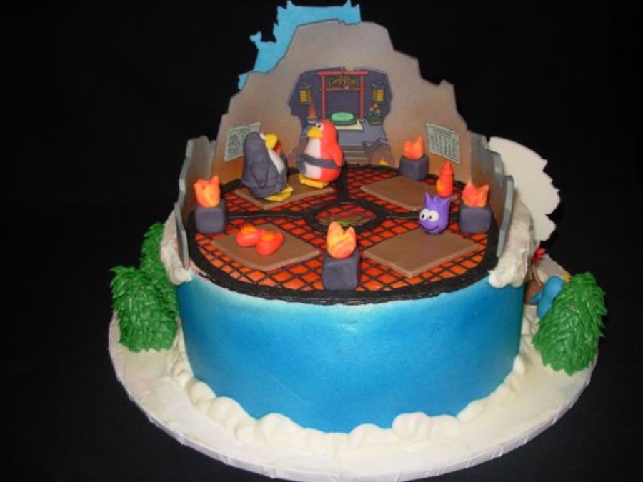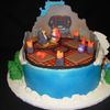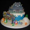 Buttercream. Gumpaste with edible image buildings, RKT and fondant figures. The village, the dojo and the fire dojo.