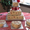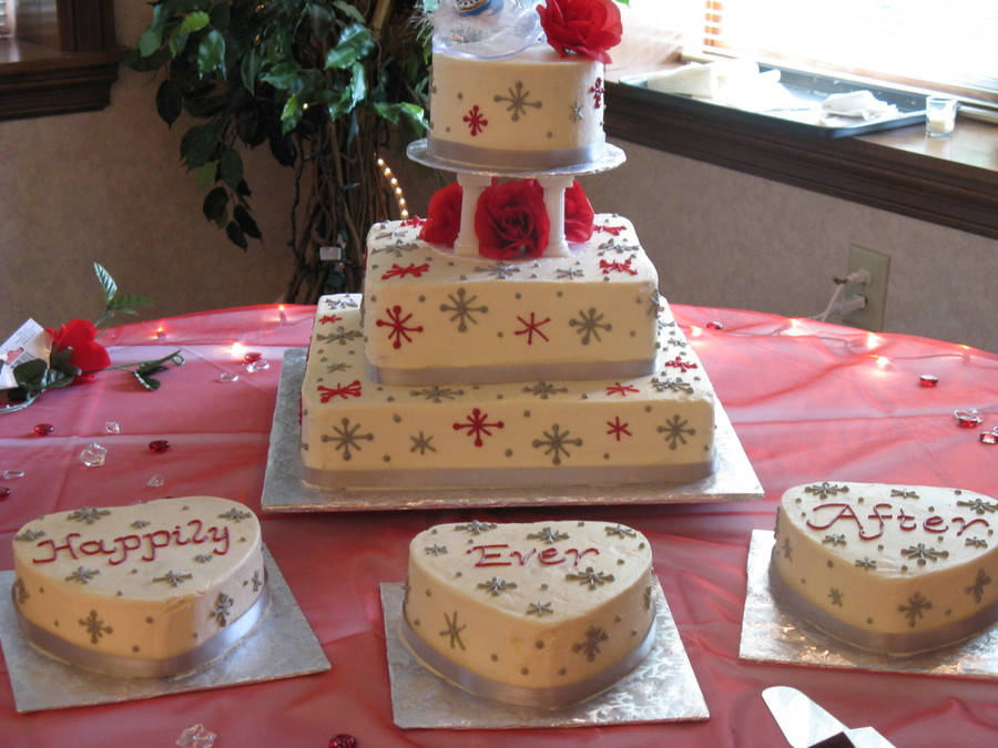 this cake was for a themed wedding... Princess lives Happily Ever After. I had a great time doing this cake it was really alot of fun. has the 3 tier wedding cake with the 3 side heart cakes