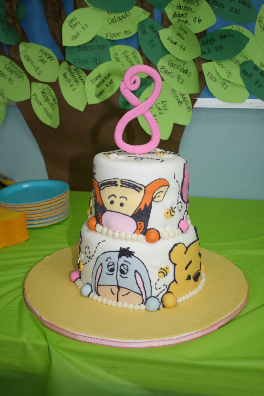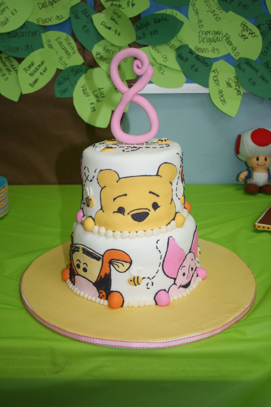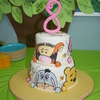 cakes are 8" and 6", covered in fondant. Faces are made of fondant with black royal icing outlines