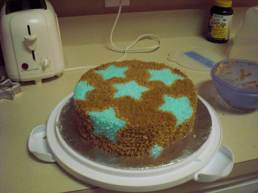 first cake for course 1. I didn't actually get to do this in class, because half of the people didn't even have their cakes frosted, but I had fun experimenting on my own