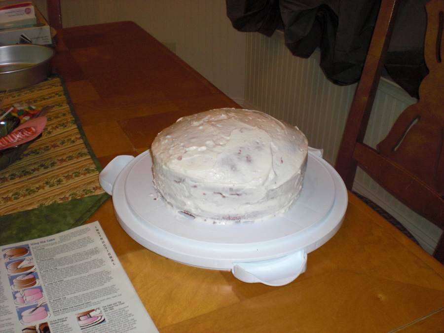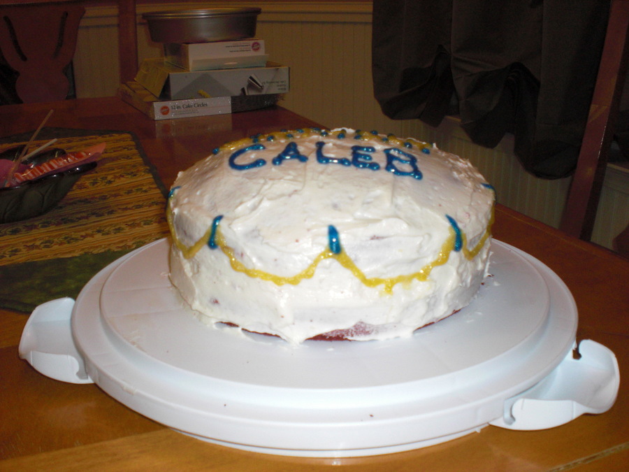 This was the first cake I've ever decorated that I did to practice before I started Course 1. I used the Wilton BC recipe, but i used store-bought gel icing to decorate... and it ran like a waterfall. Thank goodness I've gotten a little better since this!