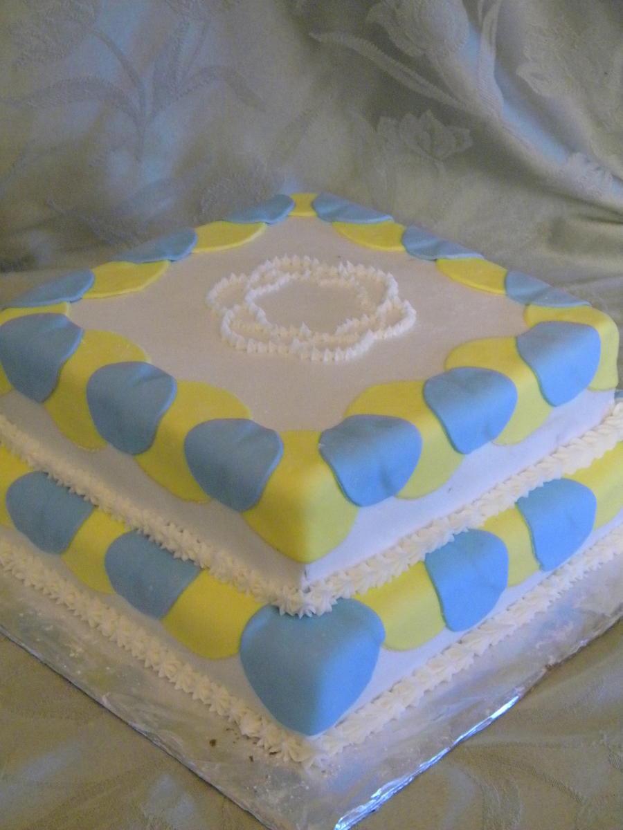 I was just playing with fondant and possibilities. This was before I read that it is difficult to cover a chocolate cake with white fondant =o) I am pretty happy with the way it came out.