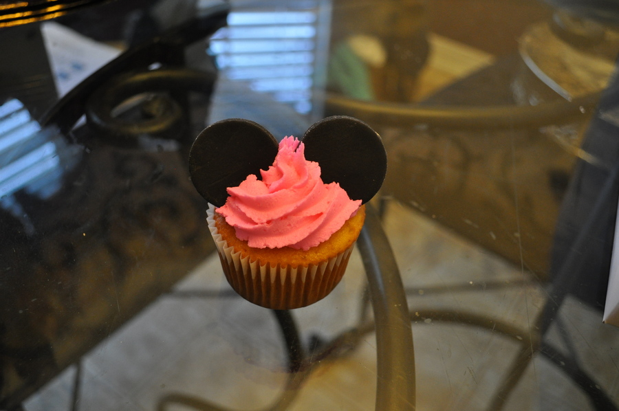 Yellow cupcakes with hot pink buttercream icing and fondant ears