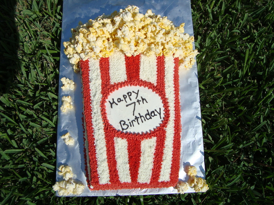 Used melted marshmallow to mix in with the popcorn to make it stick and taste sweet. I made this cake for a carnival themed birthday party.