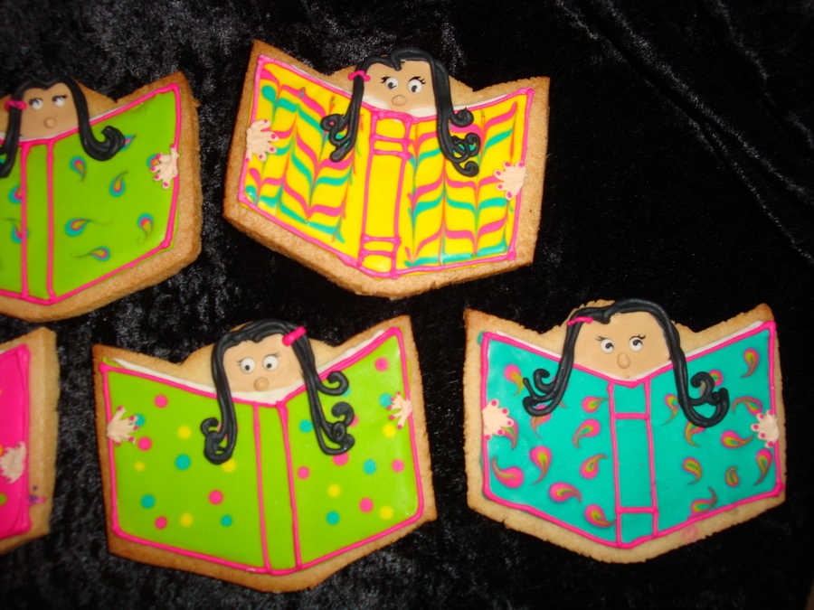 My daughter wanted a cookie to show how much she loves to read, so we saw this on Polka Dot Zebra's flickr stream and decided to make them. It would have been all well and good had we not needed so many - but 48 hand cut cookies is too much! I was ok with them - but if it were a smaller amount, I would have taken so much longer and been more precise.