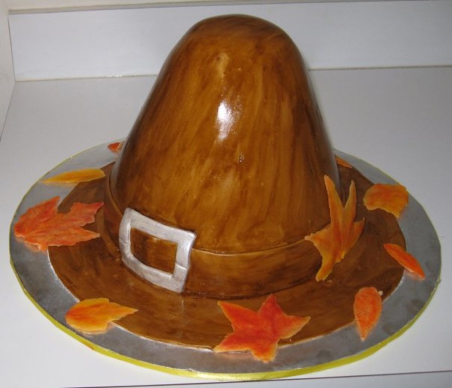 Pilgrim Hat for Thanksgiving 2009. Leaves are chocolate brushed with powdered color.