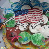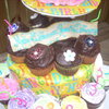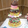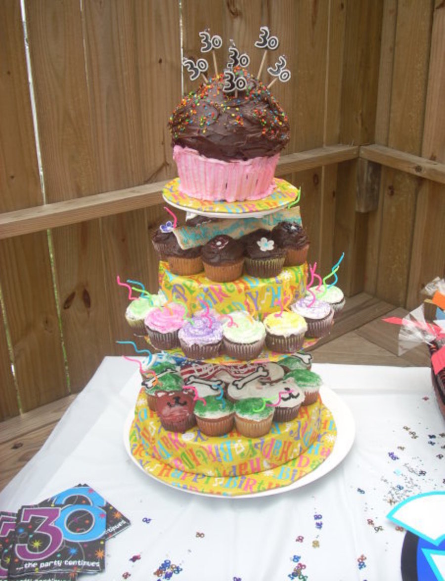 Jumbo and reg cupcakes I made for my sisters 30th birthday. Each tier reflected something in her life.