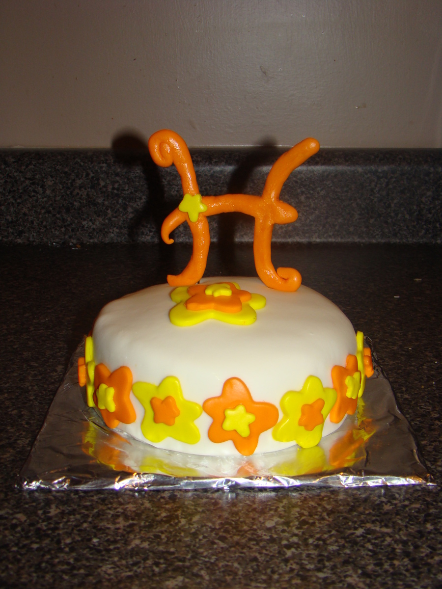 This is a 6 inch single layer cake for my other niece. Her mom has already bought her main cake so I wanted something special from me. I also wanted an opportunity to try and stand something up on a cake. The H is nice and secure. It didn't turn out as smooth as I would have liked.