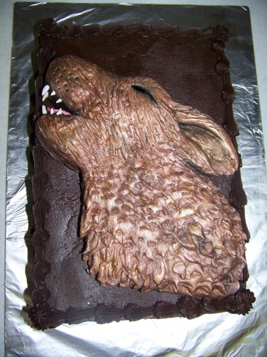 I helped my friend make her daughter's birthday cake. She iced the cake and I made the wolf.
