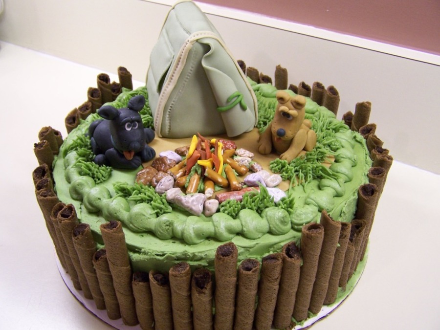 Figures are made with fondant/tylose mixture. Tent is RKT covered in fondant.