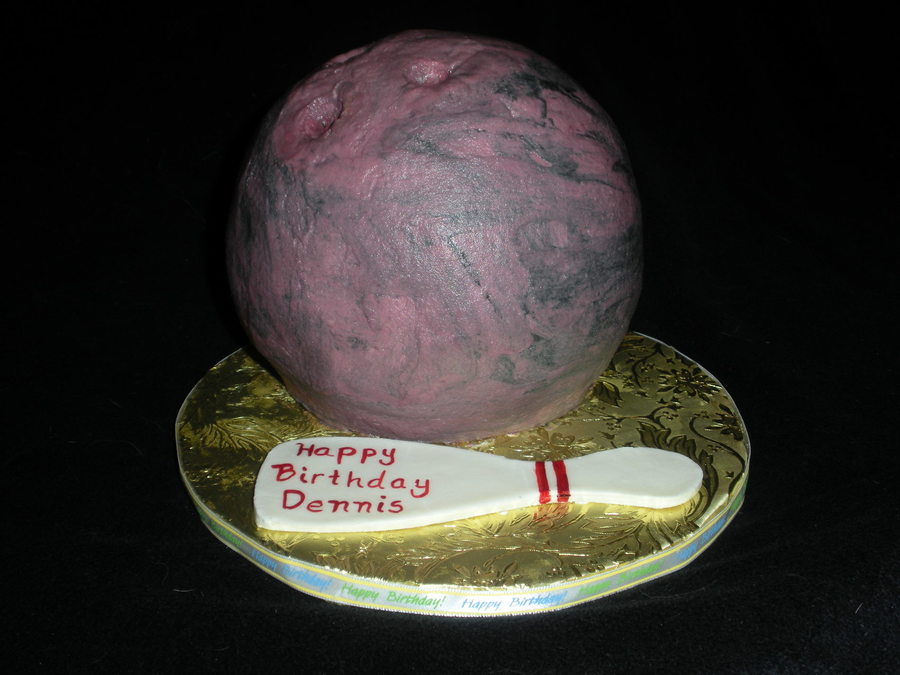 Wilton ball pan covered with buttercream, bowling pin is gum paste.