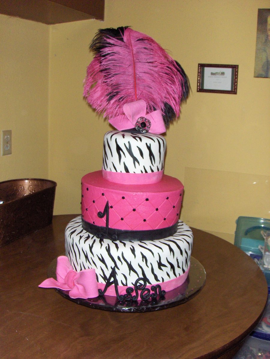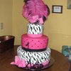 This was a cake for a baby's first birthday. It was so massive! It was also a lot of work! I used MMF, escept on the bows they were a 50/50 MMF/GP mix. The top and bottom layers are MMF but the middle layer is buttercream. And the dots on the middle layer a re tiny black jewels.