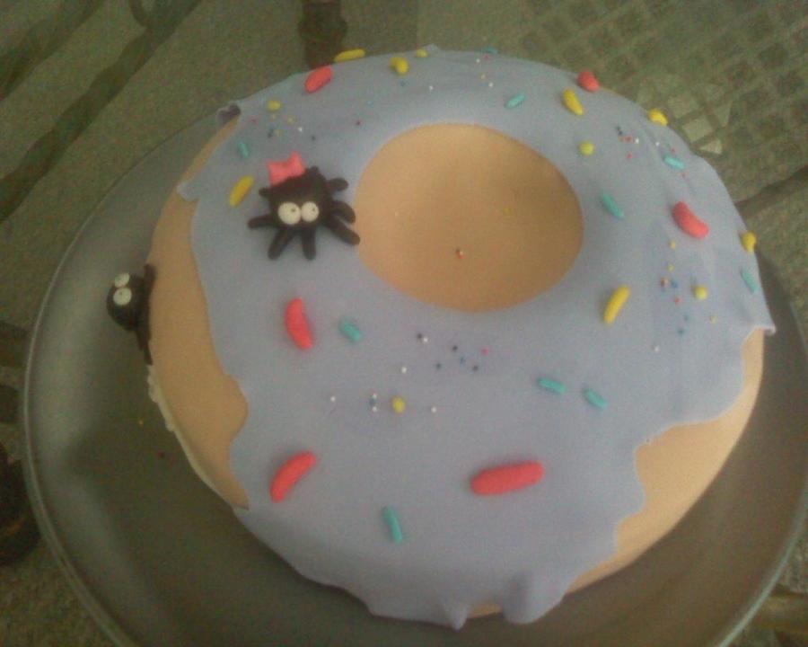 Made with fondx fondant. The spiders dont really have a place on the donut but i thought i was cute and i just wanted to try my new fondant out :-)