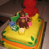 Chocolate cake with homemade fondant. Elmo and all accessories are made with rice krispies covered in fondant or buttercream.