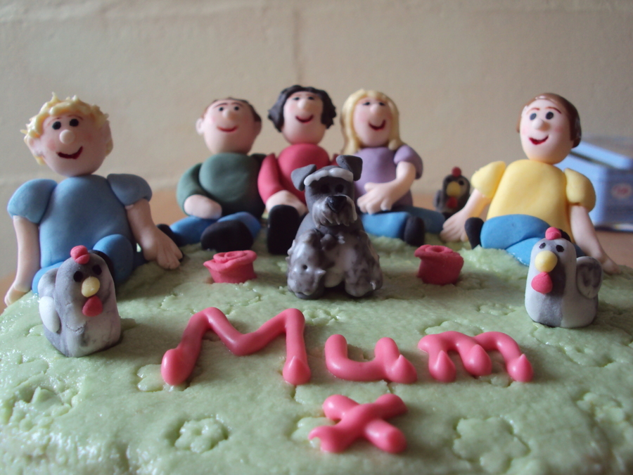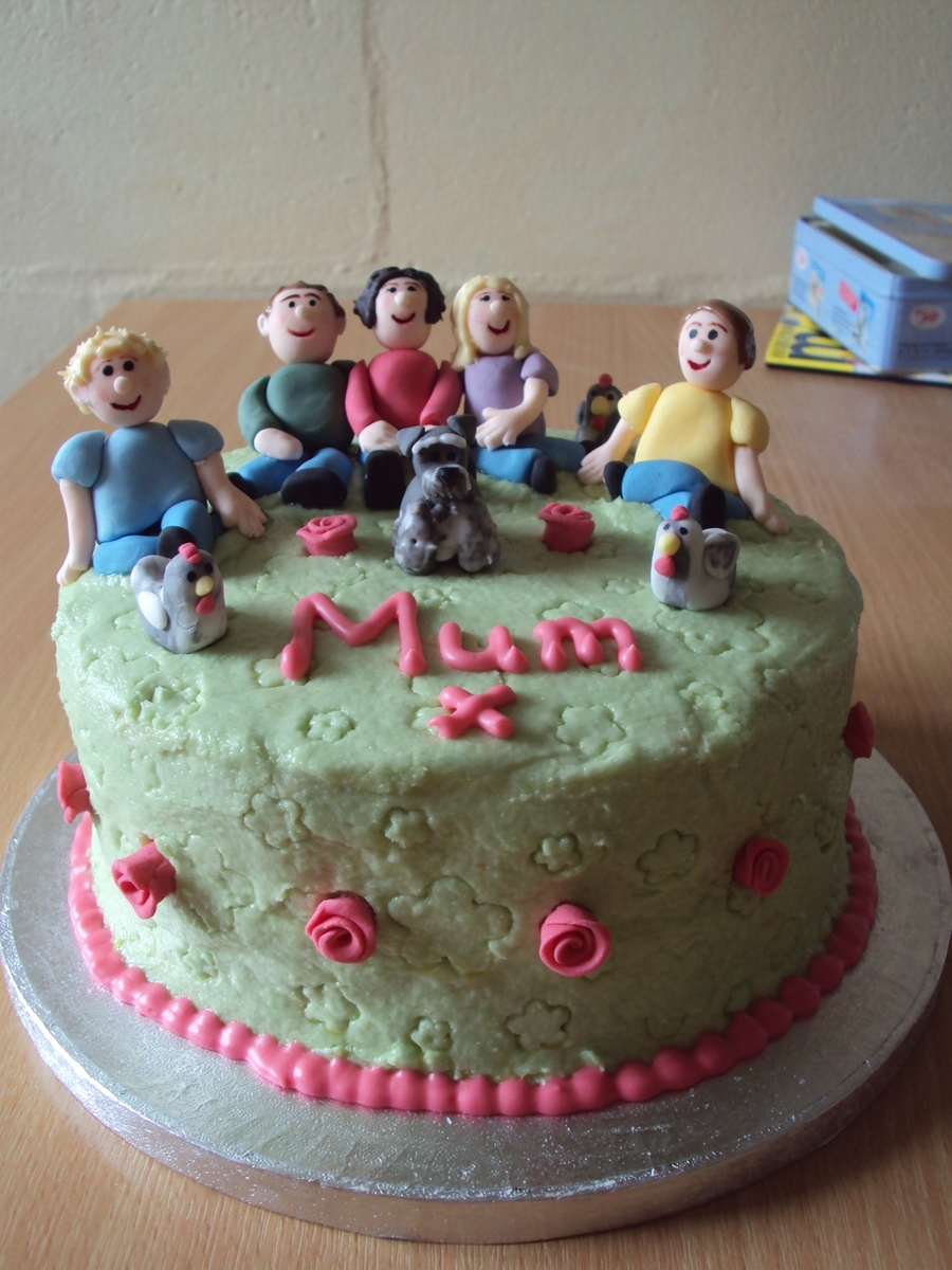 My brothers, my parents and I with our schnauzer and a few chickens! Lemon sponge with lemon curd and buttercream centre and covering. My first buttercream cake- I take my hat off to all you BCers out there- I never knew how hard it was- give me fondant anyday!!