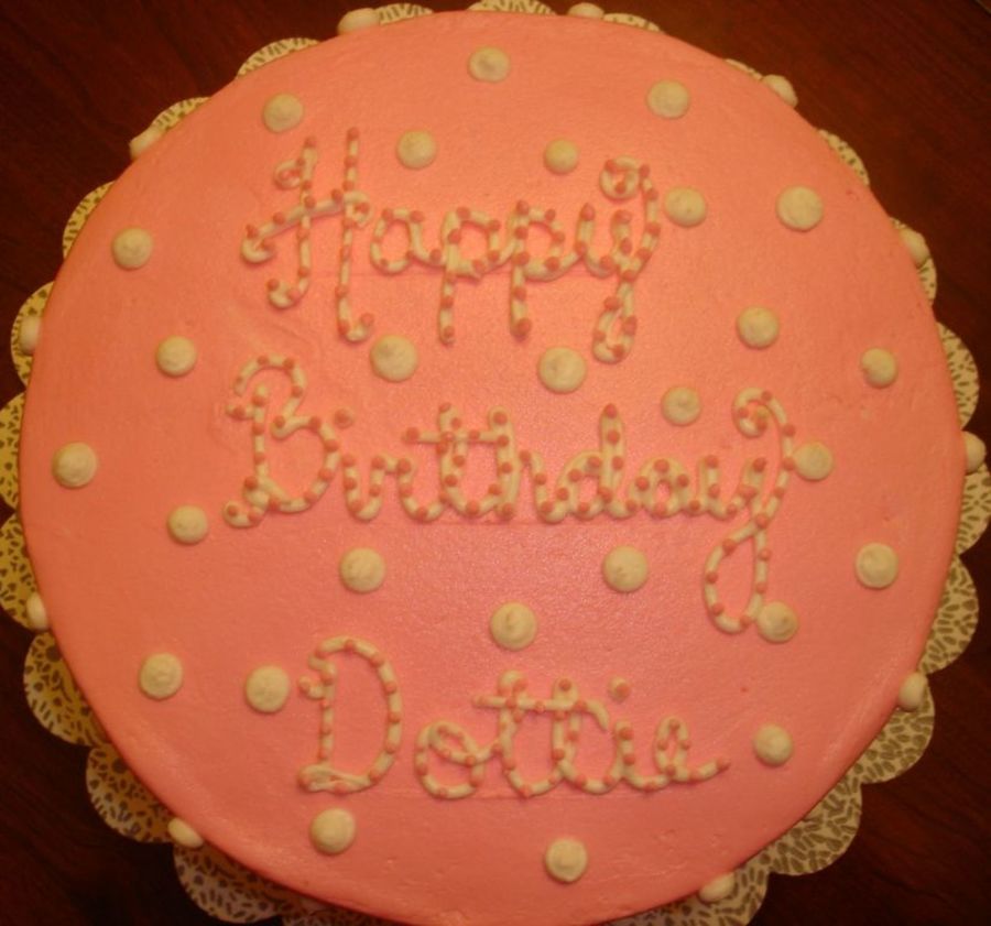 This cake is for a lady named Dottie...I hear that EVERYTHING in her house is either pink with white polka dots or white with pink polka dots!!! Its the Magnolia Cafe Vanilla Cake from CC (VERY GOOD) and BC.