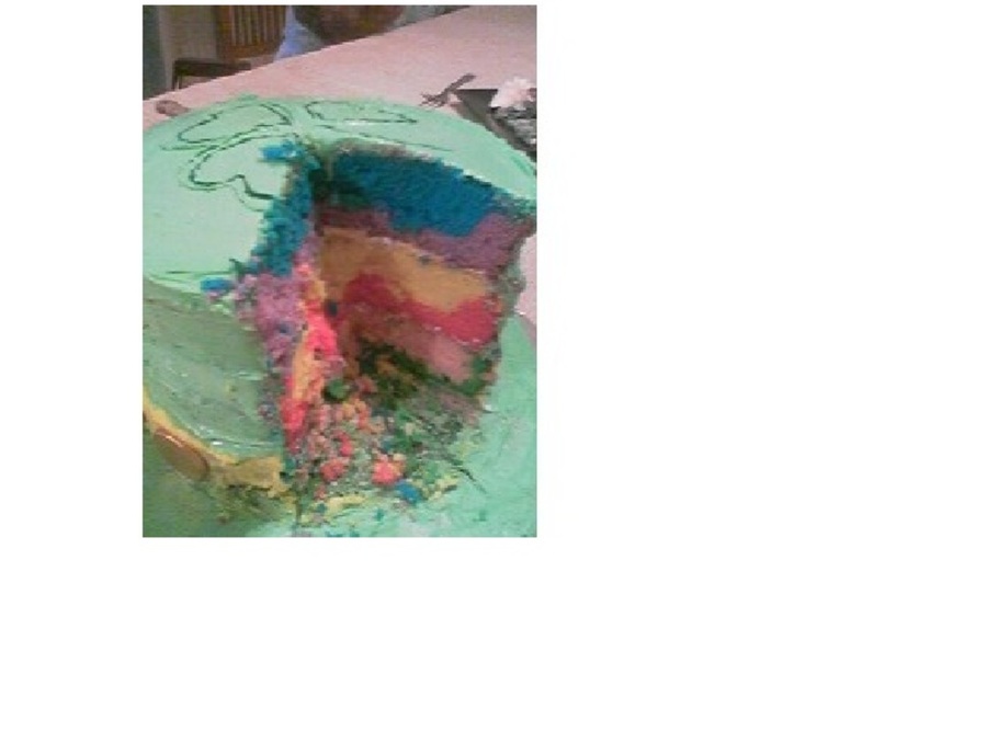 Had a real tuff time frosting cake. More like a cake disaster...frosting very dry!! But rainbow layers looked and tasted great...thanks to imakecakes from cc for the idea!!